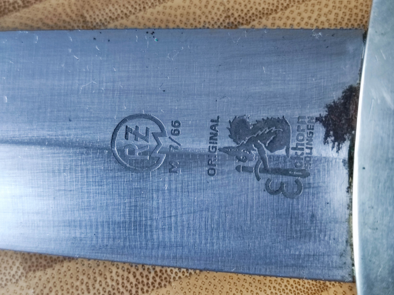 sehr schöne Klinge mit Devise und Doppelhersteller.