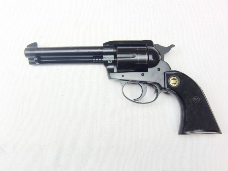 Sie bieten auf einen Double Action Revolver Röhm RG63 im Kaliber .38Special. Nitro-Beschuß 1965, 5“ Lauflänge mit fester Visierung, 6-Schuß Trommel, schwarze Kunststoff-Griffschalen für Rechts-und Linksschützen. Guter Zustand für das Alter des Revolvers!!!