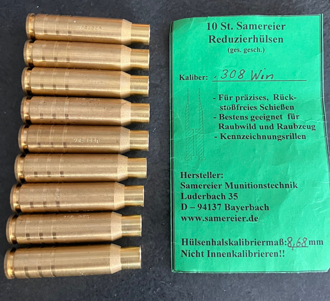 Sie bieten auf die abgebildeten Samereier Reduzierhülsen, 9 Stück, .308 Win.