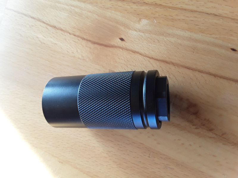 Verkaufe aus Überbestand einen Blast Forward Compensator für Gewehre mit 5/8-24 Mündungsgewinde. Also für AR - systeme oder auch andere Büchsen mit dem Gewinde. Multikaliber bis .30er. Die Mündungsbremse mit Gewinde ist aus Stahl, der Deflektor aus eloxsierten Aluminium. Bei den kurzläufigen Waffen eine feine Sache, da der Gasdruck, Schall nach vorne abgeleitet wird und das Mündungsfeuer ebenfalls gedämpft wird. Nicht nur auf dem Schießstand für sich selbst, als auch für den Nachbarschützen ein Gewinn. Ich führe den Compensator auch auf einer Bergara Waffe( Siehe Bild 3). Die Gesamtlänge ist 6,8 cm, der Durchmesser ist 3,2 cm. Dies ist ein Privatverkauf daher keine Gewährleistung oder Rücknahme meinerseits möglich ! Bitte beachten sie dies!