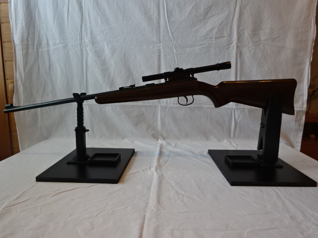 gebrauchter Einzelladerbüchse von Anschütz in .22 lr. mit offener Visierung und ZF Springfield 4x.