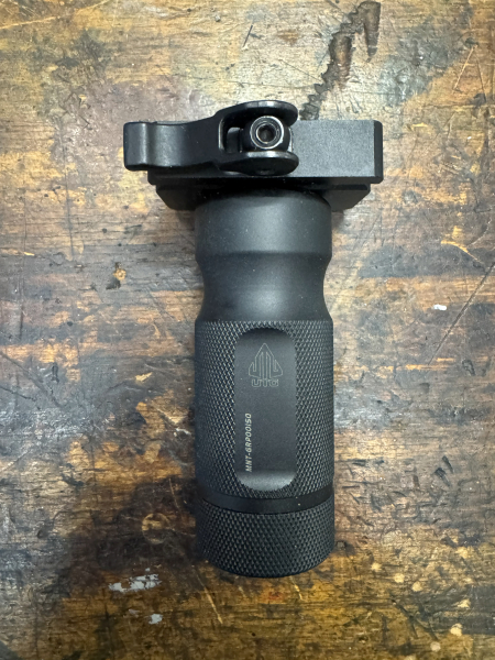 Angeboten wird ein Vordergriff für Picatinny, werkzeuglos abnehmbar und mit einem wasserdichten (Batterie)Fach.