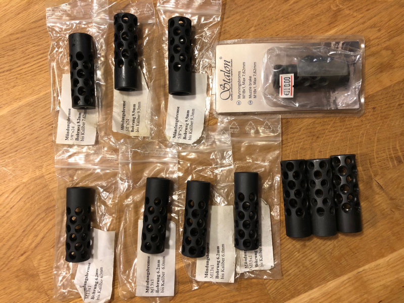 Großes Konvolut an verschiedenen Mündungsbremsen wie abgebildet.
