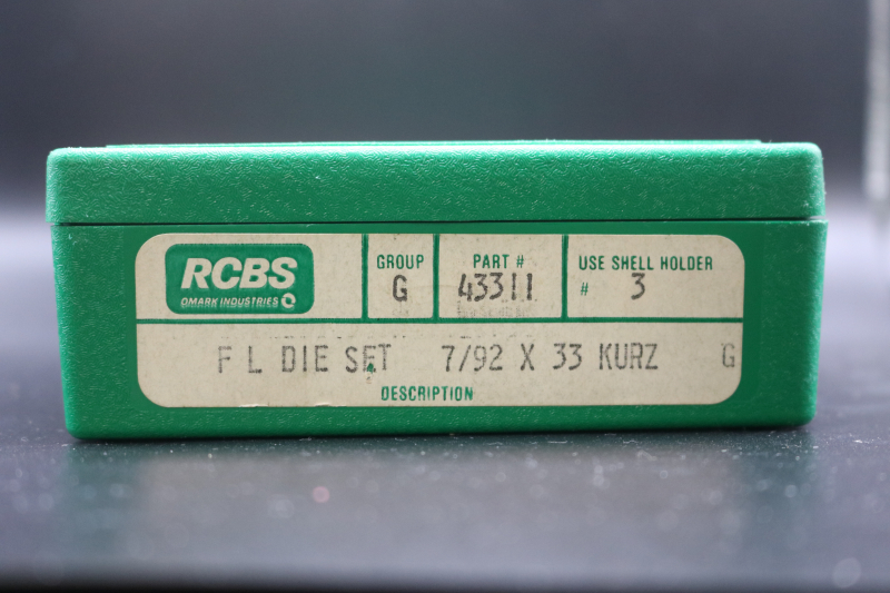 Verkauft wird ein Matritzensatz im Kaliber 7,92x33mm bzw. 8x33mm bestehend aus Vollkalibrier- und Setzmatritze.
