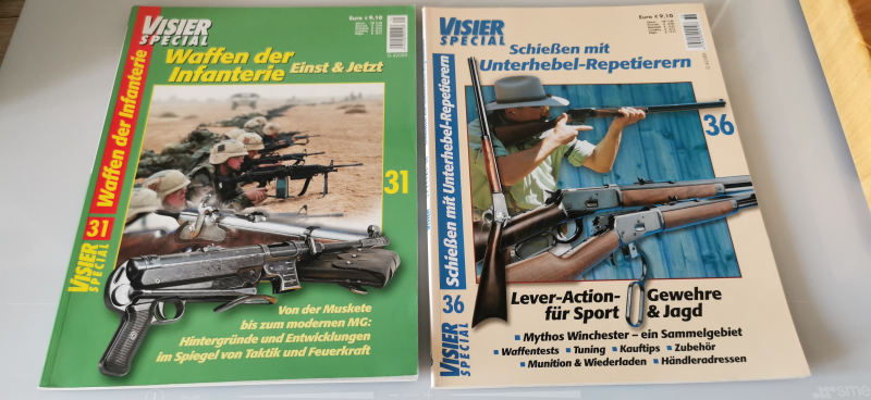 Abzugeben aus dem Nachlass sind sechs VISIER SPECIAL - Flinten - Schießsport - Sportschießen mit Ordonnanzwaffen - Waffen der Infanterie Einst & Jetzt - Schießen mit Unterhebel-Repetierern - Geschosse und Ballistik - zur Auktion.