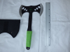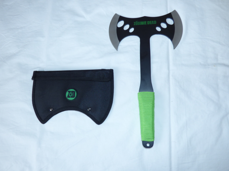 Angeboten wird die Doppelaxt auf den Fotos. Zombie Dead Art.nr. 83967 Hersteller: Haller Stahlwaren.Komplett aus 420 rostfreiem Stahl gefertigt, schwarz beschichtet, am Griff mit zombiegrüner Nylon-Kordel umwickelt. Mit schwarzer Nylonscheide.Die beiden Klingen sind scharf geschliffen.