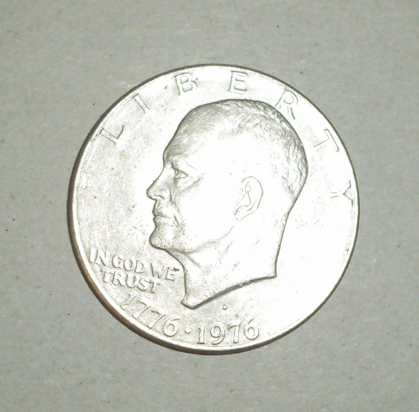Sie bieten ein Stück Ein Dollar. wenig zirkuliert, Erste Abnutzungen. 1776-1976 Jubiläums-Kursmünze.