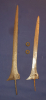 Angeboten werden zwei Keris/Kris Klingen, als Zugabe werden zwei Mendak Fragmente zugegeben. Ohne Angel 37 und 31,8 cm lang.