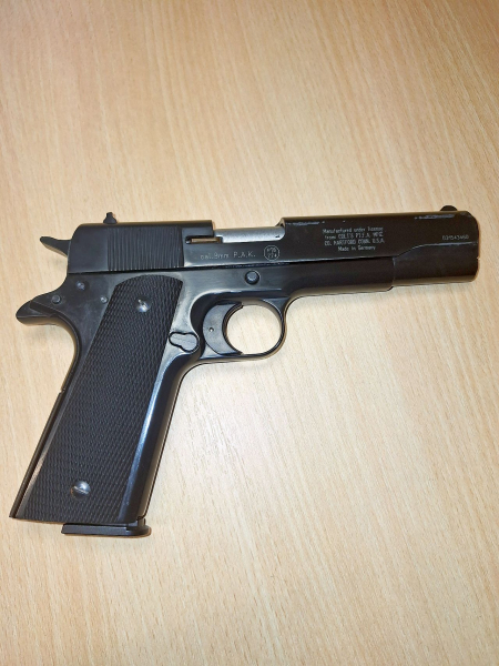 Zur Auktion biete ich aus einem Nachlass. Eine Schreckschuss Pistole Colt Government 1911 A1 im Kaliber 9mm P.A.K. in der Farbe schwarz an. Die Nummer der PTB ist 774. Die Trockenfunktion der Pistole ist gegeben. Zustand der Pistole ist auf den Fotos zu sehen. Am Schlitten sind im Bereich der Mündung leichte Abnutzungsspuren siehe Fotos. Die Fotos sind Bestandteil der Auktion.