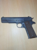 Angeboten wird von IWG, Enser Sportwaffen. Eine Schreckschusspistole Mod. Government cal. 8mm K. Die Nummer der PTB ist 531. Die Pistole ist brüniert schwarz mit braunen Kunststoffgriffschalen. Die Trockenfunktion ist gegeben. Die angebotene Pistole wurde 1992 erworben und hat die entsprechenden Gebrauchsspuren. Die Brünierung ist im Bereich des Griff stark abgerieben. Der Zustand der Pistole ist auf den Fotos zu sehen. Die Pistole ist solide verarbeitet mit einem Gewicht von ca. 975 gr. Die Fotos sind Bestandteil der Auktion.
