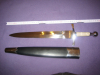 Der elfenbeinfarbene Griff ist mit einem tauschiertem,kupferfarbenen Metalldraht belegt.