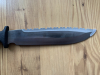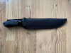 Hallöchen - ich gebe einen Saufänger bzw. eine "KALTE WAFFE" für Jäger ab; das Teil misst insgesamt 38 cm, wobei die max. 4 mm dicke Klinge bei einer max. Breite von 5 cm mit Sägezahnrücken 23,5 cm innehat. Der rutschfeste Gummigriff sorgt für ein sicheres Handling beim Gebrauch. Selbstredend ist das (Bowie-)Teil auch für sonstige Outdooraktivitäten bestens geeignet, für meine zierlichen Frauenhände ist das wohlgemeinte Weihnachtsgeschenk jedoch überdimensioniert. Im Lieferumfang enthalten ist eine Kunststoffscheide.