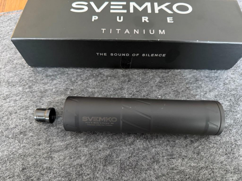 Versteigert wird ein Schalldämpfer der Firma Svemko Pure S im Kaliber .30/ 7,62 mm mit Quick Mount Adapter inkl. Quick Mount Laufadapter für das Gewinde 15 x 1 inkl. Schutzkappe. Es handelt sich um einen Volltitanschalldämpfer der zerlegbar ist. Einwandfreie Dämpfung bei sehr leichtem Gewicht. Gekauft am 22.07.2025. Gesamtschussbelastung ca. 40 Schuss. Lieferung mit Originalverpackung, Zerlegewerkzeug etc.