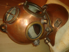 Aus meiner Sammlung biete ich an: Original Taucherhelm der Firma DRAEGER Lübek Modell, ich denke M1930? Originalzustand mit sichtbaren Spritzern, auf den originalen Glasscheiben, die von Unterwasserschweißarbeiten herrühren. Der Kupferkorpus altersbedingt bestens erhalten, die verschraubte Dichtung von Ober-zum Unterteil wurde wohl erneuert, passt bestens. Der originale innere Telefonanschluss ist vorhanden, aber nicht geprüft. Ein ehrliches Stück deutscher maritimer Geschichte. Bei Uboot-und sonstiger Wrack-oder Schiffsbergung, aber auch bei Bau-und Instandsetzung von Marinedocks und Hafenanlagen waren die mutigen Helmtaucher im Einsatz. Ausser beider ngl. Inventarnummern sind keine Abnahmestempel erkennbar. Noch heute gibt es Hobbytaucher, die mit alten Anzügen und Geräten tauchen (siehe Internet). Dieser angebotene Helm würde sich meiner Meinung nach noch dazu eignen. ( natürlich ohne Gewähr) Die 3 Abzeichen sind nicht Bestandteil des Angebots, werden nicht verkauft. Ein seltenen Schnäppchen, das Jahr fängt gut an für Sammler oder Museen.