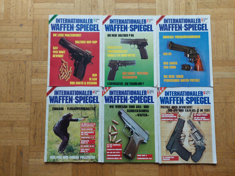 Hier etwas aus vergangener Zeit zum Schmökern: Internationaler Waffenspiegel (IWS), Jahrgang 1983. Das damalige Erscheinungsdatum war 2-monatlich, so dass mit den hier angebotenen sechs Heften der Jahrgang komplett ist.