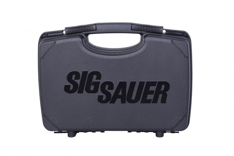 Schwarzer Sig Sauer Pistolenkoffer aus schlagfestem ABS Kunststoffmit Standard-Ashlar-Schaumstoffeinlagen mit Formschnitt für Pistole,Zusatzmagazin, etc..