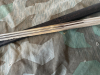 Die Klinge hat mehrere Flecken und die Schneide wirkt so als hätte mal jemand damit gespielt (siehe Fotos). Auf der Klinge ist eine Herstellermarkierung und die Inschrift: Meinem lieben Leo zur Erg an den 27. Febr 1915 gewidm seine treue Paula.