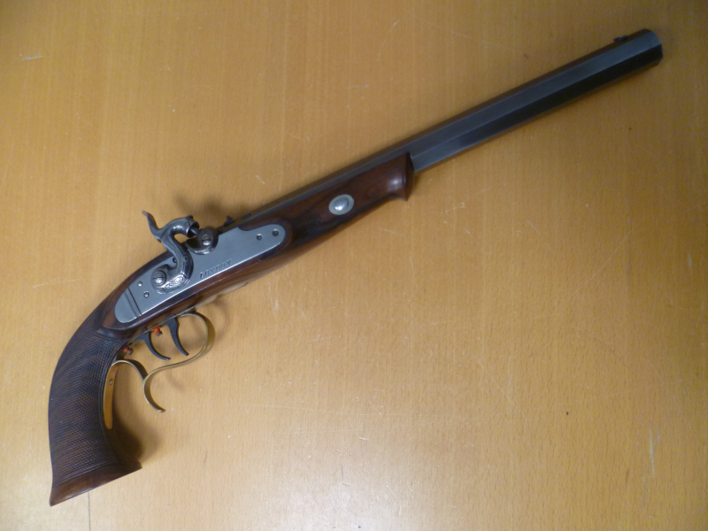 Technisch einwandfreie Perkussionspistole mit normalen Gebrauchsspuren.