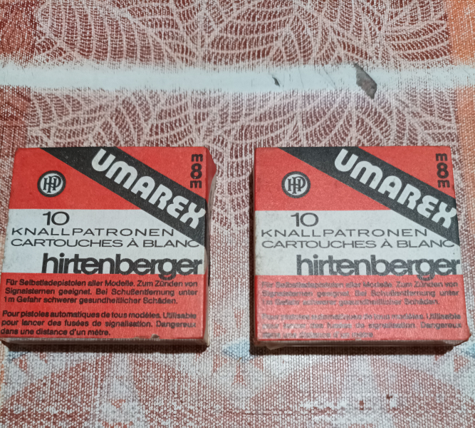 Zum Verkauf zwei Packungen alte Hirtenberger 8mm Knallpatronen mit starker Ladung. Wie auf den Bildern zu sehen ist noch mit weißen Verschlusskappen. Wurden immer trocken gelagert. Verbrauchsdatum Dez. 1985. Etwas für Sammler. Privatverkauf keine Rücknahme keine Garantie keine Nachverhandlung.