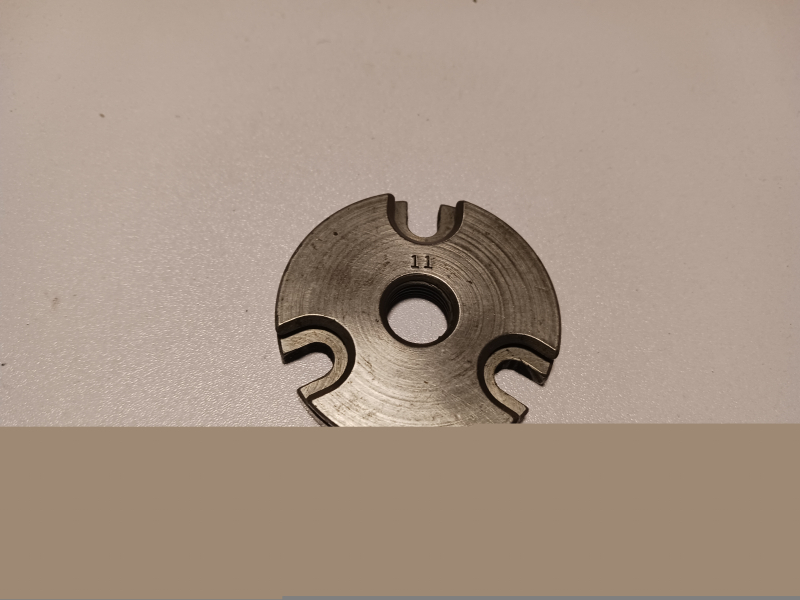 Hülsenhalterplatte Nr. 11 für die Mehrstationenpresse Lee Pro 1000. Die Platte Nr. 11 passt für .44 Mag., .44 special und .45 Long Colt. In meinen anderen Auktionen finden Sie Hülsenhalterplatten Nr. 4 (für .222, .223 und 9 mm kurz) sowie Nr. 19 (für 9 mm, 10 mm Auto und .40 S&W).