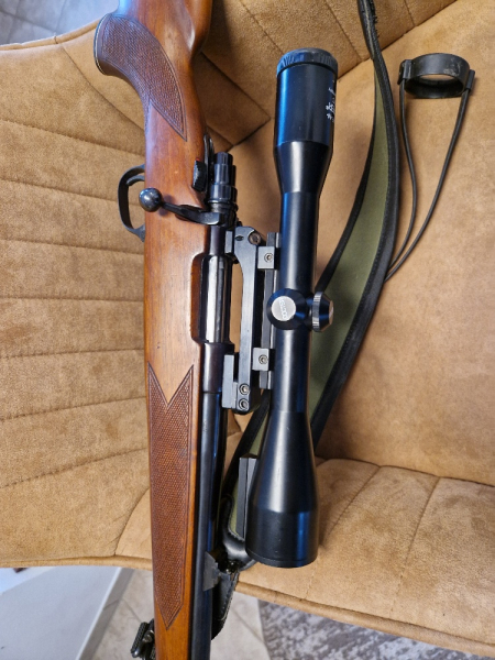 Die Waffe hat wenig Gebrauchsspuren in Form von kleinen Druckstellen. Keine Kratzer im System u. auch nichts Schlimmes am Holz. Das ZFR hat nur minimale Gebrauchsspuren am Korpus Kante Objektiv vom Waffenschrank.