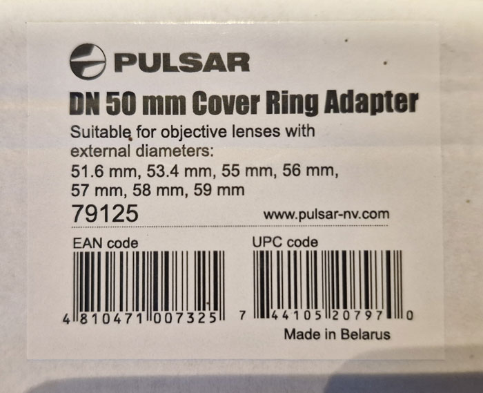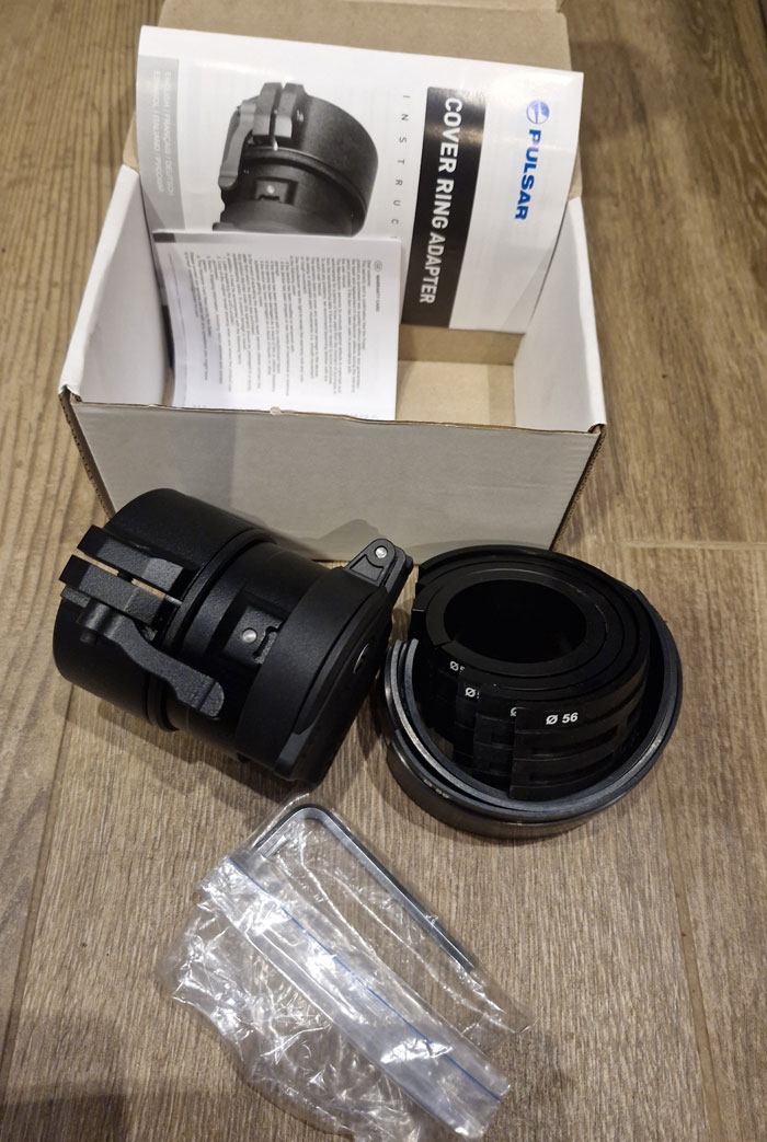 Der Pulsar FN50mm Ring-Adapter dient dazu, um das Pulsar Gerät: CORE, DFA 5 oder DN55 an eine Tagesoptik anzubringen. Im Set des Pulsar FN 50mm sind verschiedene Übergangsringe, Deckel und Sechskantschlüssel enthalten. Mit dem Pulsar FN 50mm montieren Sie Ihr Beobachtungsgerät innert Kürze als Vorsatzgerät.