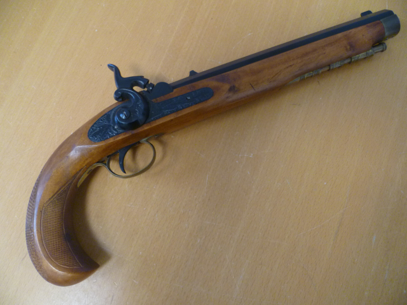 Perkussionspistole mit normalen Gebrauchsspuren.