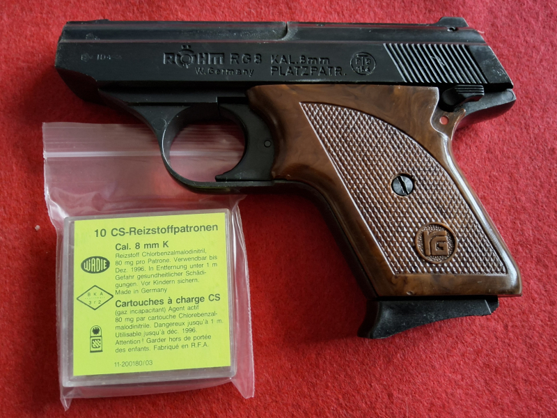 Angeboten wird die abgebildete Röhm RG8. Die Waffe befindet sich in einem in einem guten Zustand mit leichten bis mittleren Gebrauchsspuren. Zum Angebot gehört eine Packung CS-Patronen. Ansonsten ist kein weiteres Zubehör dabei. Der Verkauf erfolgt im Auftrag, ohne Garantie und Rücknahme.
