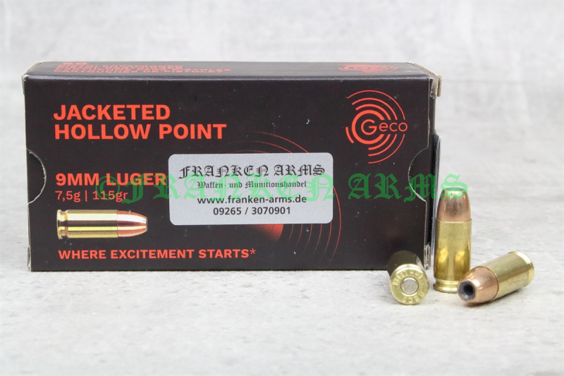 Geco 9mm Luger Hohlspitz 115gr. 7,5g 50 Stück