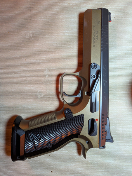 BESCHREIBUNG: Modell: CZ TS 2 Deep Bronze (Tactical Sports 2 - Meisterausführung!) Kaliber: 9mm Luger (9x19) Alter: 3 Jahre (erworben 2022) Zustand: Neuwertig, sehr gepflegt Verwendung: Sehr wenig geschossen, hauptsächlich Training