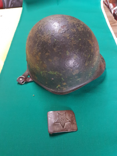 VERKAUFE RUSSISCHEN STAHLHELM MIT KOPPELSCHLOSS WK II -- BITTE FOTOS ANSEHEN -- PRIVATVERKAUF, DAHER KEINE GARANTIE UND KEINE RÜCKNAHME -- VERSICHERTER VERSAND.