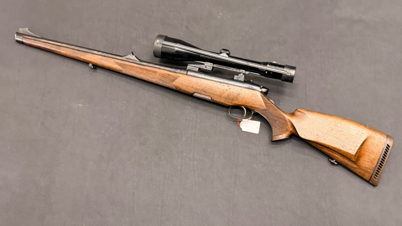 Zum Verkauf steht eine Steyr Mannlicher Modell Luxus Repetierbüchse im Kaliber 9,3x62 in klassischer Stutzen-Ausführung (Vollschaft). Die Waffe befindet sich in einem sehr gepflegten und voll funktionsfähigen Zustand und überzeugt durch ihre hochwertige Verarbeitung sowie ihre kompakte, führige Bauweise.