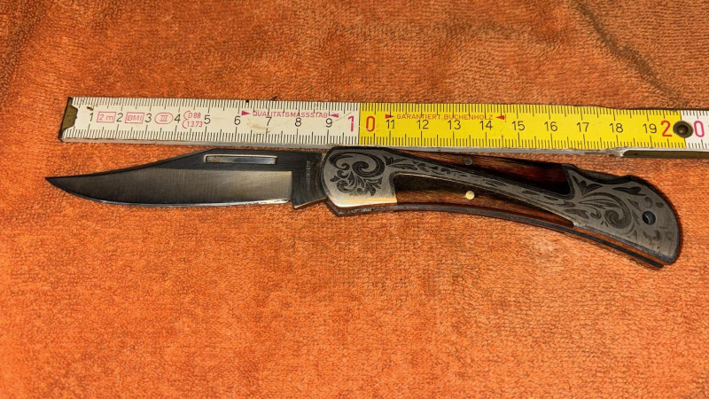 Das Taschenmesser ist mit schönen Gravuren versehen und m.M. nach im guten Zustand.