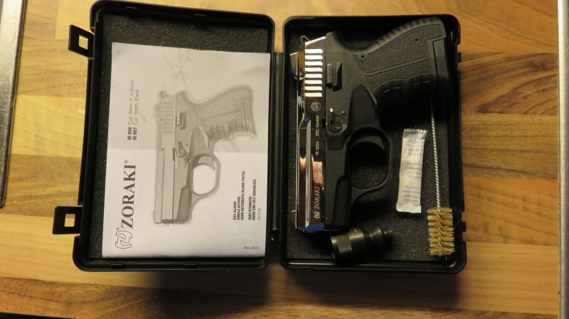 Marke : ZORAKI Schreckschußpistole 9mm Knall P.A.K. Chrom Sonderedition. Im Kunststoff Behälter , Abschußbecher , Reinigungsbürste , Anleitung . Die Pistole wurde nur 1 mal ausprobird, 6 Schuß . Es ist eine Taschenpistole 6 Schuß Sehr beliebt bei Männer und Frauen zum Selbstschutz weil sie klein und leicht ist. sie wiegt nur 470 g. Trozdem soliede gebaut , viel aus Metall. Die Bilder sind verkaufsrelevant.