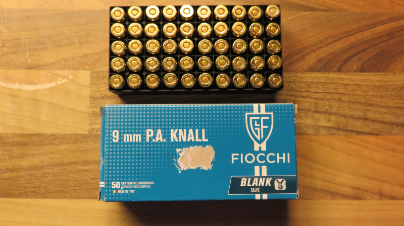 Halloverkaufe als Privatverkäufer eine Schreckschuß Pistole und 50 Schuß 9mm P.A. Knall Patronen Marke Fiocchi.