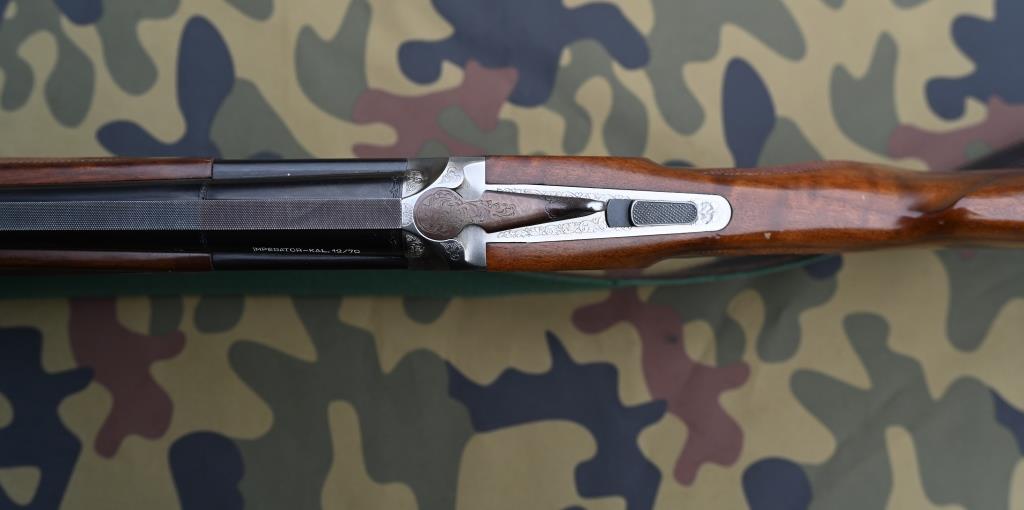 „18,5“ auf oberem Lauf, „18,5“ auf unterem Lauf, Chokeangaben oben 1 Stern (Full), unten 3 Sterne (Modified). Seriennummer, auf der Baskülenunterseite „WISCHO Germany“, darüber Modellbezeichnung "IMPERATOR" und "Modell 1" sowie "BEST TRADE MARK" und "INC. BRESCIANI". Italienische Beschusszeichen "PSF"(aber kein Stahlschrot!), „1440 KG“ und „CAM 70.“ auf Läufen. Codiert-datiertes Beschusszeichen "BD" = 1994. Auf dem oberen Lauf linksseitig "IMPERATOR 12/70".