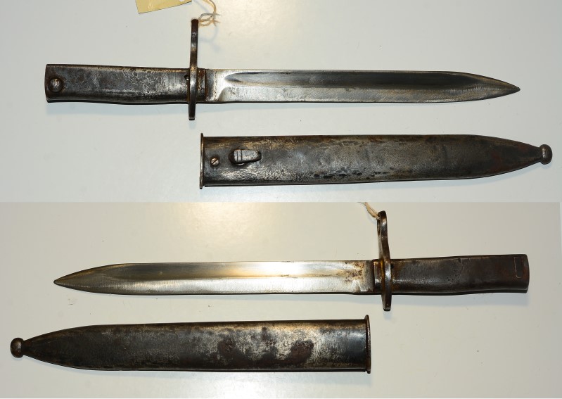 Türkisches Ersatzbajonett, Ganzstahl, vergleichbar der deutschen Modelle, ev. auch in Deutschland gefertigt, Klingenlänge 25,3 cm, Spuren längeren Gebrauchs aber keine Schäden