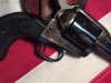 Der vorliegende Revolver ist einer der wenigen Hege Uberti SAA ,der damals bei Uberti am Anfang der Knall-Umbauten direkt aus der scharfen Produktion genommen wurde und den DEUTSCHEN BEHÖRDEN zum Beschuss vorgelegt wurde.Aus diesem Grund hat er die getrennte Achshülse,wie es auch noch die erste und die zweite Generation der Original_Colts hatte(Hintergrund:Die damalige Verwendung von Schwarzpulver-Patronen sorgte für ordentlich Schmauch im System-durch die doppelte Achshülse ging das Timing nicht schon nach einem Dutzend Schuss fest) Colt verzichtete bei der dritten Generation darauf-wohingegen Uberti mit Rücksicht auf die amerikanischen Renactors und Schützen,die sich nach wie vor Schwarzpulver Patronen fertigen in seinen Original-Revolvern nach wie vor die Achshülse lieferte.