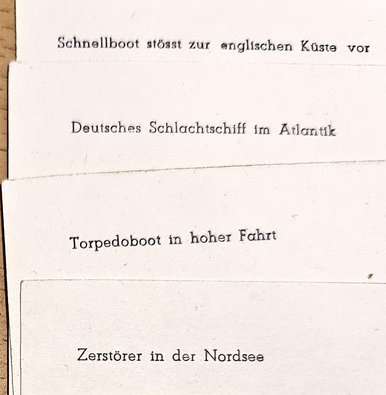 speziell in diesem Zustand und noch dazu 4 verschiedene Kriegsmarine Motive sind diese Stücke sehr selten zu finden; die Formate liegen jeweils bei ca. 9 x 13,9 cm