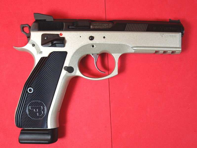 Wir bieten Ihnen hier eine halbautomatische Pistole der Marke CZ Modell 75 SP-01 in der Ausführung Mamba duotone an. Die Waffe hat schwarze Alu-Griffschalen sowie einen verlängerten Magazinauslöseknopf. Die Lauflänge beträgt 120 mm, das Gewicht ca. 1.180 Gramm. Der Abzug der Waffe wurde getunt durch den Einsatz eines Hobdell Hammers und mit einer 15 lbs Feder. Die Visierung erfolgt über ein kontrastreiches HiViz-Korn. Bei der Waffe handelt es sich um Neuware. Sie wird ausgeliefert mit Originalkoffer, Bedienungsanleitung, zwei Reservemagazinen und einem Schussbild nach Tuning auf 25 Meter Distanz.