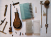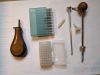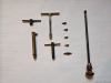 Wie auf den Bildern zu sehen, ist von allen etwas dabei. Trichter, Ladestock, Pulverdose, Pistons, Pistonschlüssel (4,5-6,5), Pulverdosierer und Pulverröhrchen in unterschiedlichen Größen in der Box. Ohne Gewähr und Rücknahme!