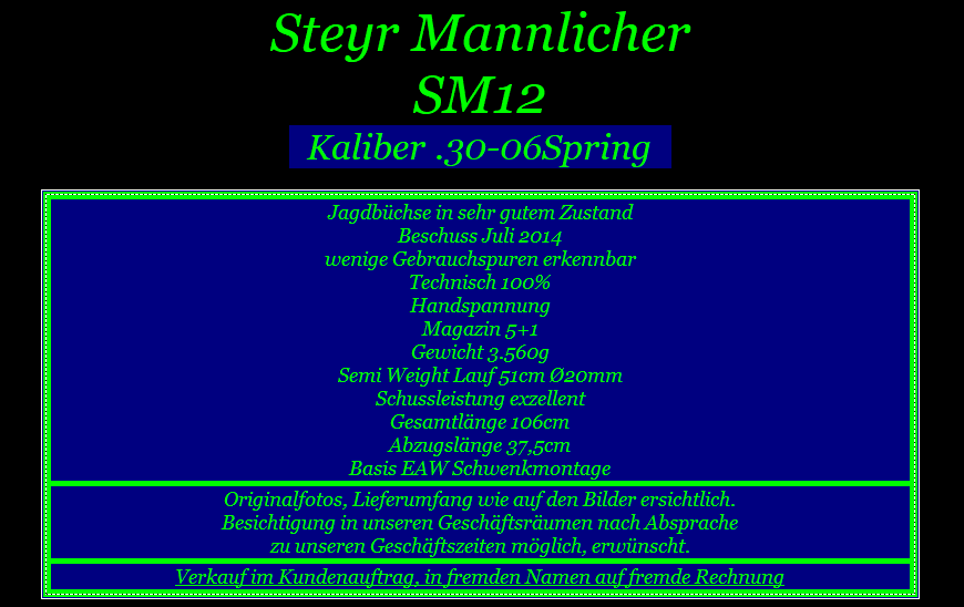 Artikel-ID: 20240195  •  ArtikelNr. des Verkäufers: 12499  •  Kategorie: Jagdwaffen > Büchsen > Repetierbüchsen