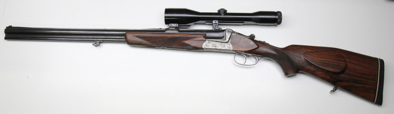Sie bieten auf Bockbüchsflinte Sauer 54 Lux. Mit schöner Arabesken Gravur rundum, Kal. 6,5x57R/16-70, Schaftlänge 38cm hervorragendes Nussbaum Schaft Maserholz, Gummikappe, ZF Zeiss 6x42Z Abs. 4, eine wunderschöne elegante schmale und leichte kombinierte Waffe, die Waffe wurde laut der Besitzerin keine 10x geführt entsprechend ist auch der Verschluss und der Top Zustand, Kom. Grosse