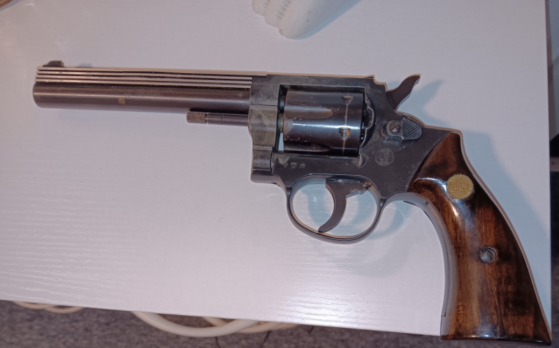 Sie bieten hier auf einen alten Reck Recolver im Kal. .380 Knall ( 9mm RK ), der Lauf ist noch "komplett offen" und ohne Sperre ( das war früher mal so ), der Stahl-Lauf hat eine durchgehende Bohrung von ca. 4mm und hat vorne "kein Gewinde" ! Von daher ist er nicht zum verschießen von Signalmunition geeignet ! Der Revolver gehörte meinem verstorbenen Schwiegervater und diese hat früher 9mm "Schwarzpulver" Patronen damit verschossen, das hat leider bleibende Spuren hinterlassen da nach Gebrauch nicht gleich sorgfältig gereinigt wurde. Leider hat der Revolver einen "DEFEKT", die Trommel transportiert manchmal nicht weiter und bleibt auf einer Stellung stehen, nach 5 - 6 mal Hahn spannen dreht sie dann plötzlich wieder weiter, ich bitte das beim Bieten zu beachten. Lauf, Trommel und sämtliche Funktionsteile sind aus Stahl, die Griffschalen sind aus Echtholz.