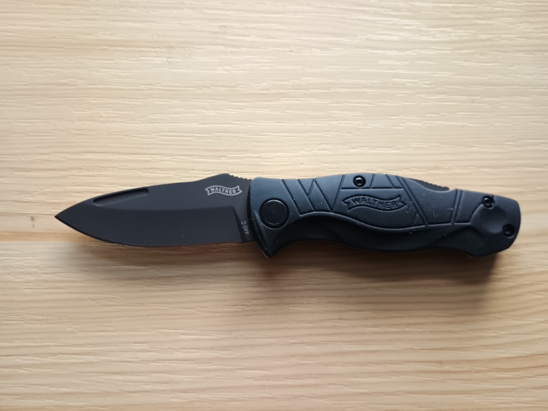 Ich verkaufe ein unbenutztes kleines, kompaktes Taschenmesser der Firma Walther. Griffschalen Elastomerbeschichtet. Mit Cordura Gürteltasche. Klinge pulverbeschichtet, Klingenlänge ca. 6,7cm.