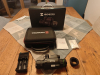 – natürlich das Gerät, –ein Ladegerät, – zwei Akkus, – eine Tragetasche mit Gurt, – ein Linsenreinigungsstuch, – eine Bedienungsanleitung.