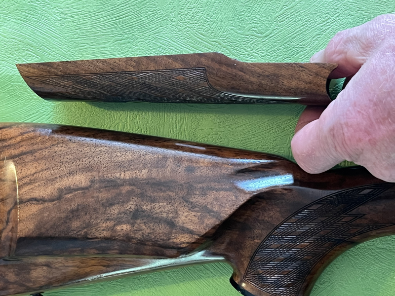 Zum Verkauf steht ein gebrauchtes hochwertiges Linksschaft Set für Blaser S2 mit breitem Vorderschaft u. Hinterschaft mit Aussparungen für die langen Seitenplatten. Holzqualität hochwertig, leichter passte dieses Set nicht wie versprochen an den Blaser D 99 Drilling. Am Hinterschaft fehlt die Schaftkappe u. das Pistolengriff Käppchen. Am Vorderschaft fehlen die Metallteile u. der schwarze Abschluß . Warum diese vom Vorbesitzer demontiert wurden konnte ich nicht klären. Fehlende Teile lassen sich aber beim Büchsenmacher oder Blaser ergänzen bzw. montieren. Bei Fragen melden u. bitte realistische Preisangebote. Privatverkauf ohne Garantie, ohne Rücknahme, ohne Gewährleistung. Gekauft wie beschrieben, besprochen oder abgebildet. Preis ist VB !
