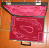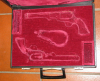 Zum Verkauf kommt ein Koffer, ohne Schlüssel, für zwei Perkussion - Revolver / Pulverflasche und Zubehör