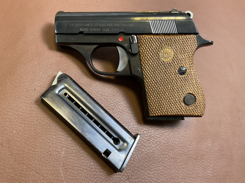 Zum Verkauf steht eine sehr gut erhaltene Pistole Astra im Kaliber .22lr .Die Waffe verfügt über spanischen Beschuss und befindet sich in einem fast neuwertigen Zustand. Lediglich leichte Altersspuren sind vorhanden, die sich durch gründliches Reinigen deutlich verbessern lassen.
