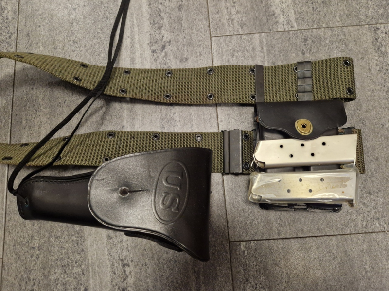 Sieht komplett Neuwertig aus. Koppel, Doppelmagazintasche und das Holster für die 1911. In der Magazintasche sind 2 Magazine, eins davon ist noch in der original Lieferfolie verpackt.